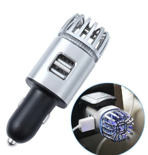 2-in-1 Ionic Car Air Purifier & Dual USB Fast Charger – Eliminate Smoke, Dust & Odors Instantly
